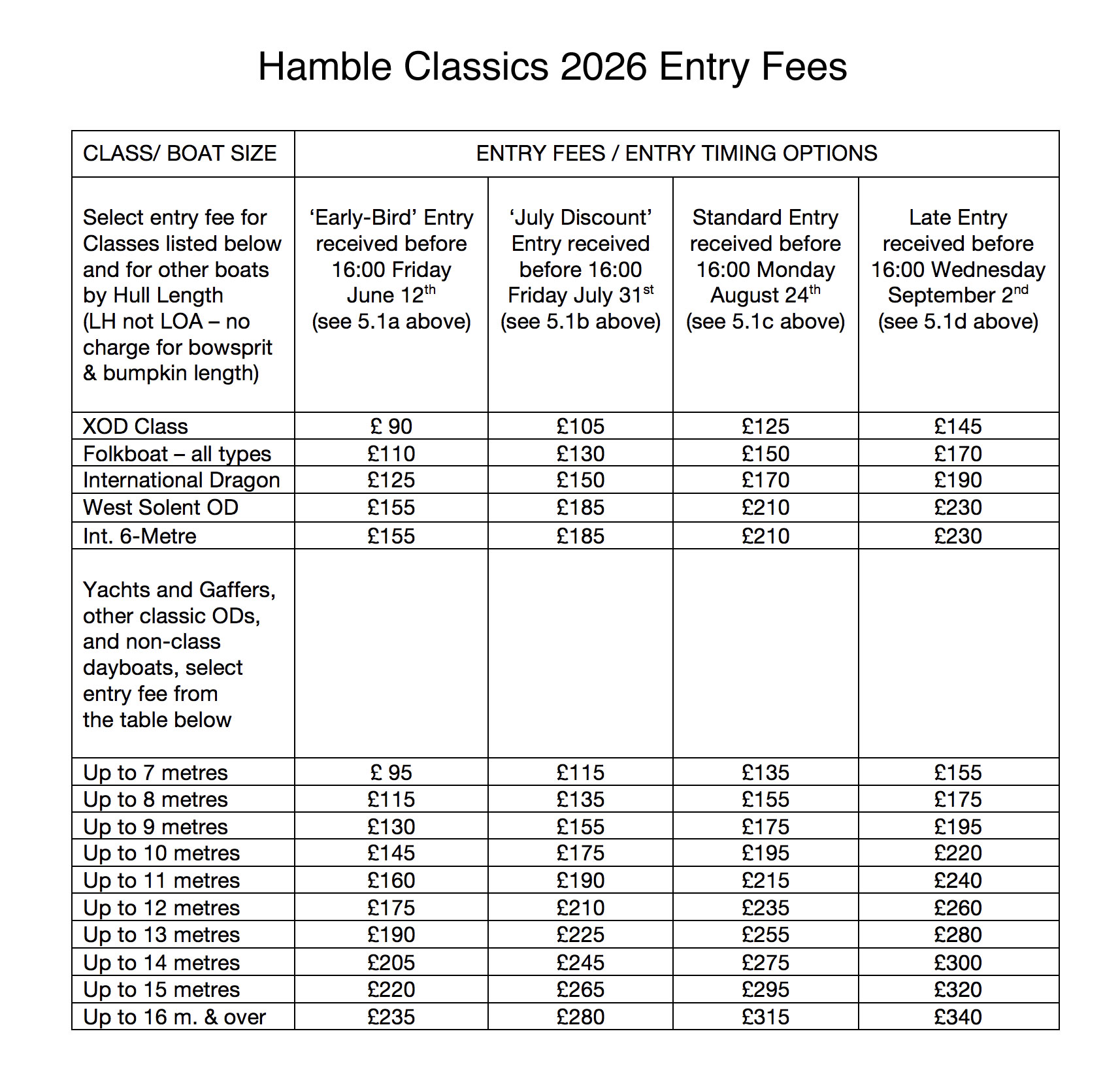 includes Entry Fee rates and Yacht Eligibility Guidance